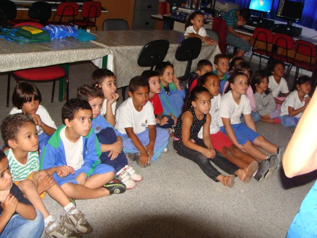Os alunos no Laboratório de Informática realizaram uma pesquisa no site www.angela-lago.com.br, a biografia da autora e exploraram todos os ambientes disponíveis no site.